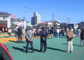 そして陽射しが暖かい中、続けて事務所前広場にて式典を、大勢の支援者の皆さんの見守る中、進めさせていただきました。