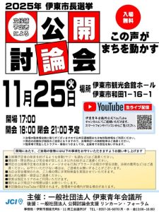 伊東市観光会館ホールにて、伊東市長選挙公開討論会を開催いたします!