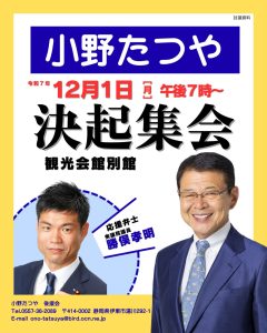 お問合せ 小野たつや後援会事務所 0557(36)2089