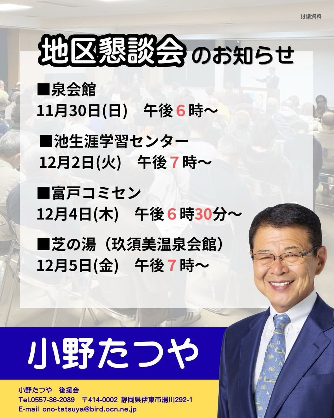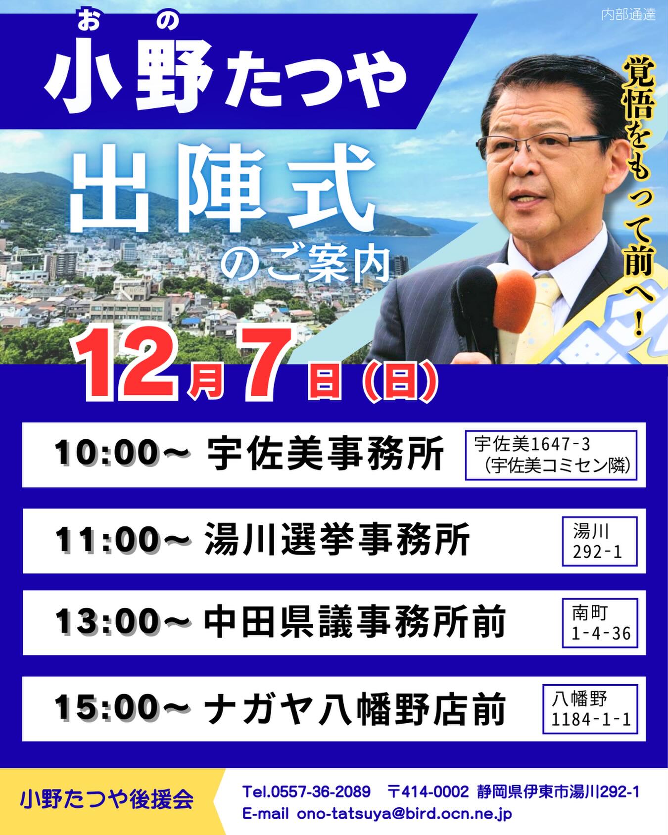 お問合せ 小野達也後援会事務所 0557(36)2089
