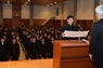 【写説】新規採用職員を代表して宣誓書を読み上げる長谷川さん(中央)=伊東市役所